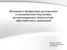 Изменения в федеральных региональных и муниципальных документах регламентирующих