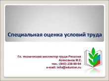 Специальная оценка условий труда Гл технический инспектор труда