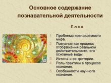 Основное содержание познавательной деятельности План 1 Проблема познаваемости