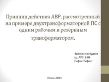 Принцип действия АВР рассмотренный на примере двухтрансформаторной ПС
