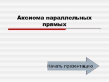 Аксиома параллельных прямых Начать презентацию Аксиома параллельных