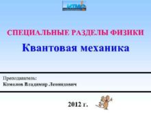СПЕЦИАЛЬНЫЕ РАЗДЕЛЫ ФИЗИКИ Квантовая механика Преподаватель Комолов Владимир