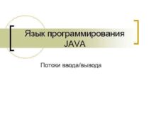 Язык программирования JAVA Потоки ввода вывода Содержание Поток