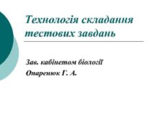 Технологія складання тестових завдань Зав кабінетом біології Опаренюк