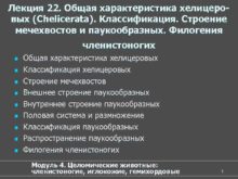 Лекция 22 Общая характеристика хелицеровых Chelicerata Классификация Строение