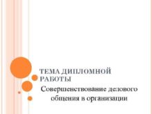 ТЕМА ДИПЛОМНОЙ РАБОТЫ Совершенствование делового общения в организации