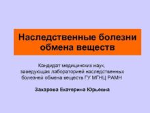 Наследственные болезни обмена веществ Кандидат медицинских наук заведующая