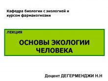 Кафедра биологии с экологией и курсом фармакогнозии ЛЕКЦИЯ