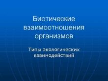 Биотические взаимоотношения организмов Типы экологических взаимодействий Типы