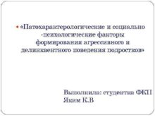 Патохарактерологические и социально -психологические факторы формирования агрессивного