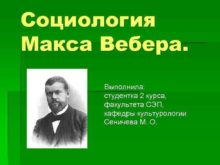 Социология Макса Вебера Выполнила студентка 2 курса факультета