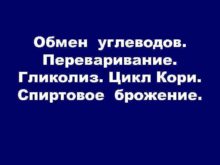 Обмен углеводов Переваривание Гликолиз Цикл Кори Спиртовое брожение