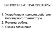 БИПОЛЯРНЫЕ ТРАНЗИСТОРЫ 1 Устройство и принцип действия биполярного