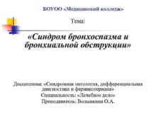 БОУОО Медицинский колледж Тема Синдром бронхоспазма и бронхиальной