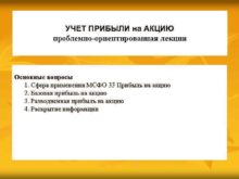 УЧЕТ ПРИБЫЛИ на АКЦИЮ проблемно-ориентированная лекция Основные вопросы