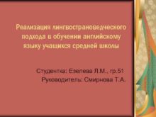 Реализация лингвострановедческого подхода в обучении английскому языку учащихся