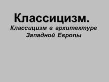 Классицизм Классицизм в архитектуре Западной Европы Классицизм