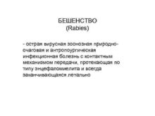 БЕШЕНСТВО Rabies — острая вирусная зоонозная природноочаговая и