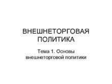 ВНЕШНЕТОРГОВАЯ ПОЛИТИКА Тема 1 Основы внешнеторговой политики