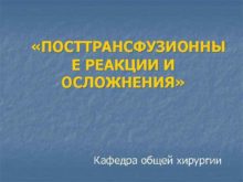 ПОСТТРАНСФУЗИОННЫ Е РЕАКЦИИ И ОСЛОЖНЕНИЯ Кафедра общей
