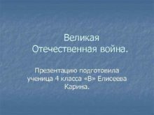 Великая Отечественная война Презентацию подготовила ученица 4 класса
