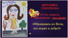 ВЕРОНИКА СКВОРЦОВА 27 лет педагог заболевание рак