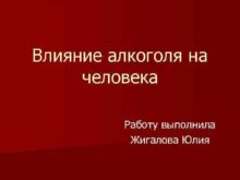 Влияние алкоголя на человека Работу выполнила Жигалова Юлия