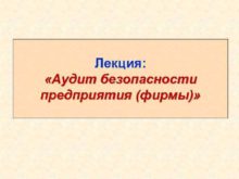 Лекция Аудит безопасности предприятия фирмы Аудит безопасности