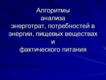 Алгоритмы анализа энерготрат потребностей в энергии пищевых веществах