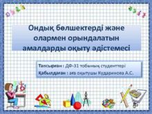 Ондық бөлшектерді және олармен орындалатын амалдарды оқыту әдістемесі