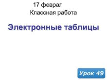 17 февраля 2018 Классная работа Электронные таблицы Урок