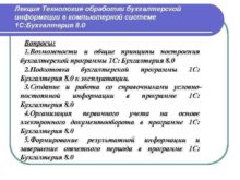 Лекция Технология обработки бухгалтерской информации в компьютерной системе
