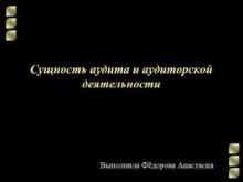 Сущность аудита и аудиторской деятельности Выполнила Фёдорова Анастасия