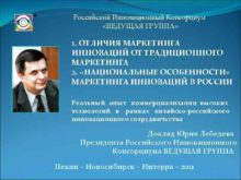 Российский Инновационный Консорциум ВЕДУЩАЯ ГРУППА 1 ОТЛИЧИЯ МАРКЕТИНГА