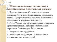 Фонетика как наука Сегментные и суперсегментные фонетические единицы