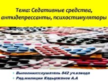 Тема Cедативные средства антидепрессанты психостимуляторы Выполнил слушатель 842
