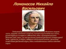 Ломоносов Михайло Васильович Геніальний російський учений-дослідник у багатьох