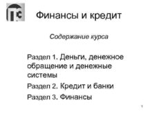 Финансы и кредит Содержание курса Раздел 1 Деньги