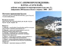 КЛАСС ПЕРВОПРОХОЖДЕНИЯ КЛУБА САУК-ПАЙ рейтинг альпинистов-первопроходцев топ-лист 1