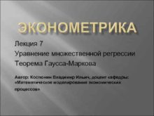 Лекция 7 Уравнение множественной регрессии Теорема Гаусса-Маркова Автор