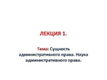 ЛЕКЦИЯ 1 Тема Сущность административного права Наука административного