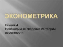 ЭКОНОМЕТРИКА Лекция 4 Необходимые сведения из теории вероятности