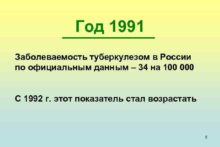 Год 1991 Заболеваемость туберкулезом в России по официальным