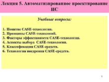 Лекция 5 Автоматизированное проектирование ИС Учебные вопросы 1