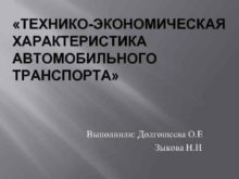 ТЕХНИКО-ЭКОНОМИЧЕСКАЯ ХАРАКТЕРИСТИКА АВТОМОБИЛЬНОГО ТРАНСПОРТА Выполнили Долгошеева О