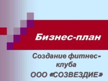 Бизнес-план Создание фитнесклуба ООО СОЗВЕЗДИЕ Адрес предприятия
