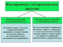 Изолирующие электрозащитные средства Основные изолирующие электрозащитные средства Дополнительные