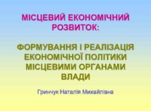 МІСЦЕВИЙ ЕКОНОМІЧНИЙ РОЗВИТОК ФОРМУВАННЯ І РЕАЛІЗАЦІЯ ЕКОНОМІЧНОЇ ПОЛІТИКИ