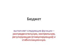 Бюджет выполняет следующие функции распределительную контрольную регулирующую