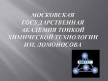 МОСКОВСКАЯ ГОСУДАРСТВЕННАЯ АКАДЕМИЯ ТОНКОЙ ХИМИЧЕСКОЙ ТЕХНОЛОГИИ ИМ ЛОМОНОСОВА
